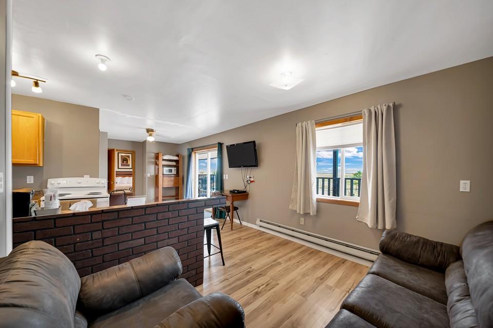 Ideal for extended stays, this spacious air-conditioned getaway features a kitchen (with stove, coffeemaker and full-size refrigerator), a dining area, and two bedrooms (one with a queen bed and TV, and the other with a double bed). The living area features a TV and sleeper sofa. Wifi too!